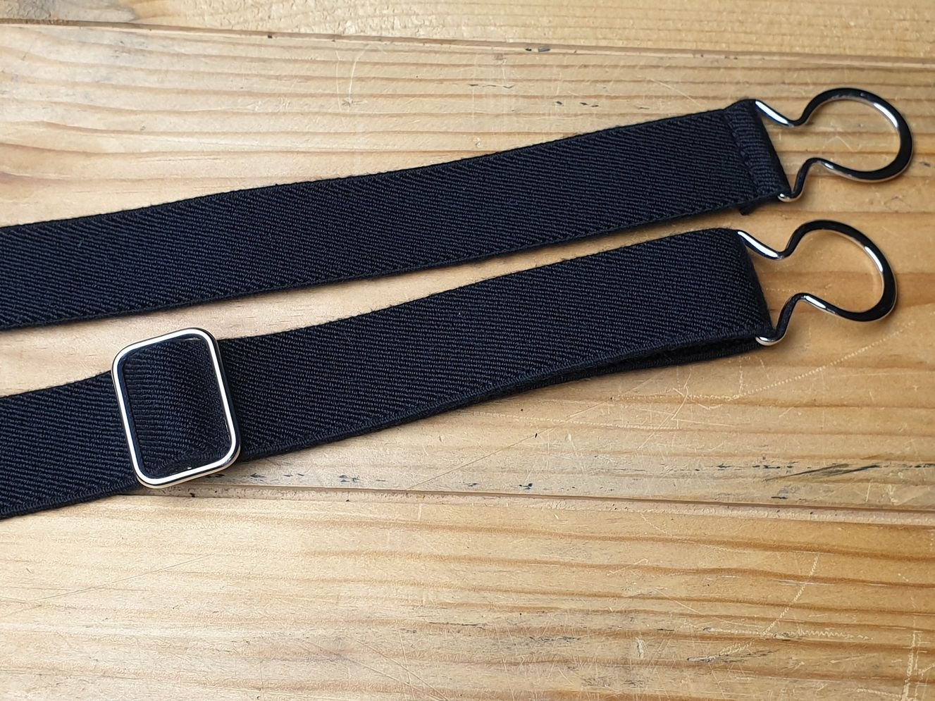 3cm breit, stufenlos verstellbar, one size. Ideal für die Wander- oder Skihose.