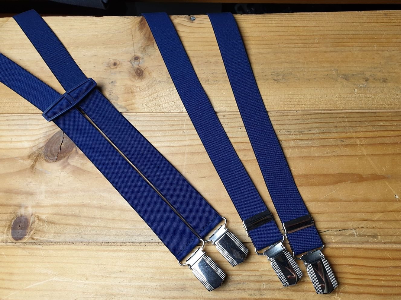 Hosenträger 2.5 cm breit in dunkelblau mit 4 Clipsen und Plastikrücken