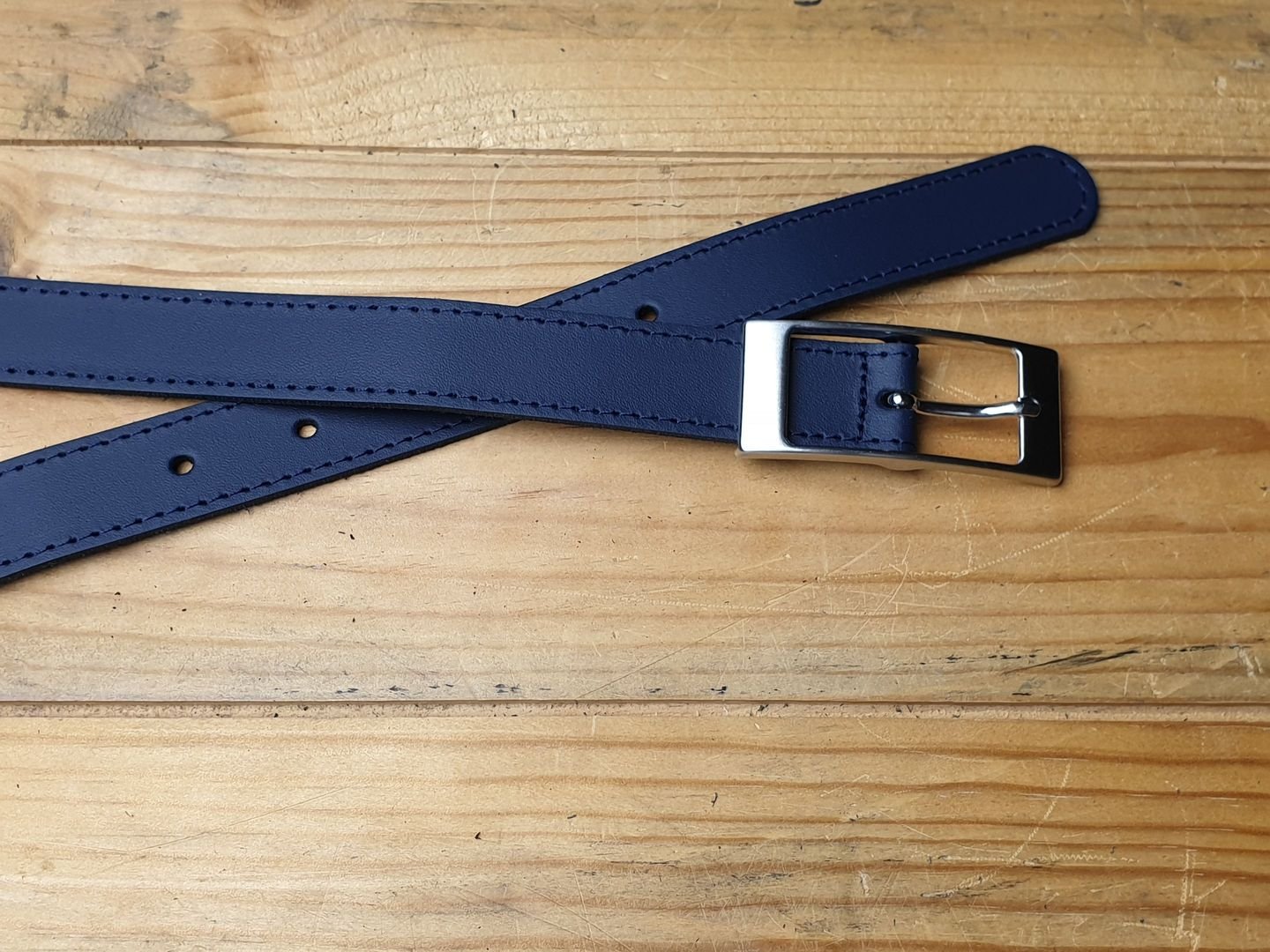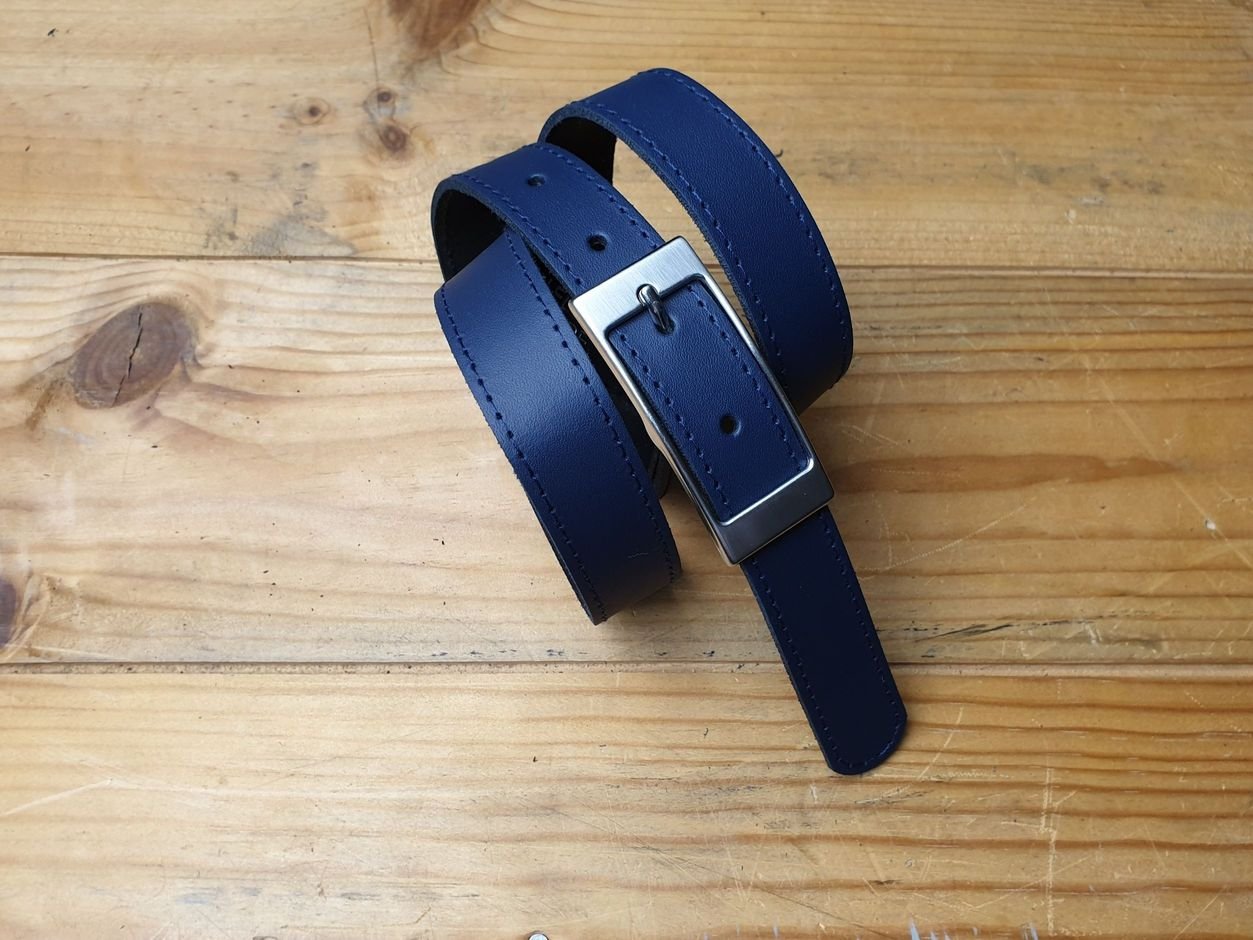 Egal ob Business oder Freizeit. Er passt immer. Marine Ledergürtel 2.5 cm breit in Spaltleder mit ganzer Schliesse silbrig satiniert, nickelfrei.