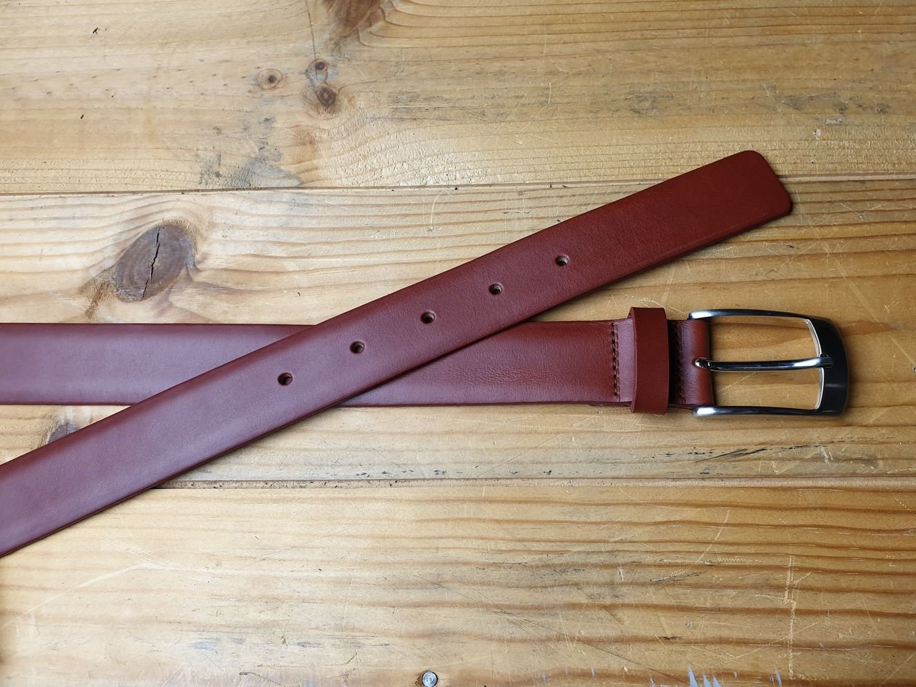 Der Businessgürtel in cognac. Ein Klassiker. 3.5 cm breiter Rindledergürtel, bombiert, Kanten gemalt. Klassische Schliesse in mattsilber poliert.
